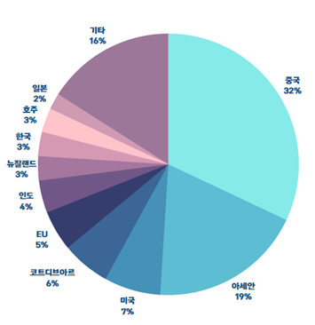 베트남 소매품의 주요국 수출 규모 및 추이(2018~2020)